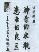 凡尊重中國古代養(yǎng)生智慧的患者,堅(jiān)持“已饑方食”和定時(shí)主動(dòng)補(bǔ)水者,均可祛病康復(fù)。如牡丹江醫(yī)學(xué)院87歲的張鵬圖飲用半年后高血壓未痊愈,陸江與他通話交流,了解他原先每日主食4兩,建議他用“已饑方食”減少主食肉食量,他理解后,將每日主食減為3兩,少吃兩塊肉,飲用一年治愈26年的冠心病和高血壓。他2003年5月31日來信說:“飲用卓康小分子團(tuán)水是根治高血壓、冠心病、糖尿病的一把金鑰匙,是填補(bǔ)醫(yī)學(xué)空白,為人類造福,應(yīng)推廣該產(chǎn)品。”