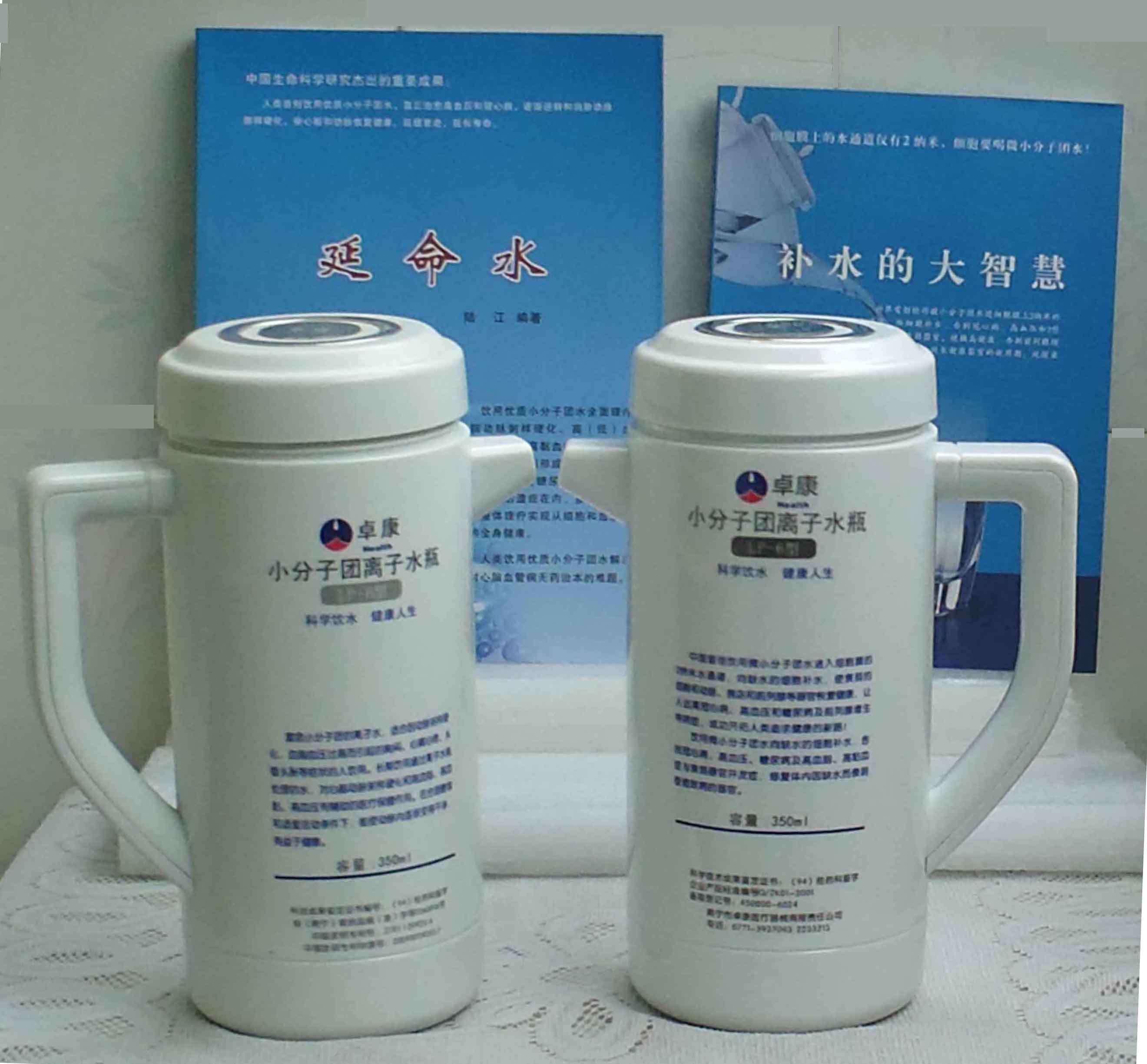 本品大量用戶的使用效果表明,能治愈冠心病、腦動(dòng)脈硬化、原發(fā)性高(低)血壓、高血脂、高粘血癥、高血尿酸癥(痛風(fēng))和2型糖尿病、衰弱器官并發(fā)癥(前列腺增生、腎衰與尿毒癥)及中風(fēng)后遺癥等療效好。產(chǎn)品配信譽(yù)卡。使用壽命30年,不換芯,易清洗。團(tuán)購優(yōu)惠。從郵局匯款,匯費(fèi)1%,地址按本頁下方地址、聯(lián)系人寫。從銀行匯款,請點(diǎn)擊[聯(lián)系匯款]欄,從工商銀行匯款,建設(shè)銀行、農(nóng)業(yè)銀行匯款,均免收匯費(fèi),匯款后20--30分鐘內(nèi)發(fā)短信,可用微信轉(zhuǎn)帳,均免匯費(fèi),微信號即手機(jī)號13768308380。匯款后,告知你的姓名和地址,我公司聯(lián)系人手機(jī)號是:13768308380。卓康牌離子水瓶為我公司獨(dú)家生產(chǎn),郵購產(chǎn)品配《補(bǔ)水的大智慧》彩印書一本,另配四季出版社出版的新書《補(bǔ)水的大智慧》一本,并配光盤一張(含央視主持人釆訪陸江的對話視頻)。目前市場和"淘寶網(wǎng)"上有人兜售假冒的偽品,望讀者審察辯別真?zhèn)危旒僬哓飧`假冒本公司的各種認(rèn)證、獲獎(jiǎng)獎(jiǎng)項(xiàng)、專利號和外包裝盒上的中英文字,包括科技成果的鑒定意見等,請讀者注意防偽。如何識別假貨?已經(jīng)買了假貨怎么辦?(請點(diǎn)擊[打假掠影][打假掠影])。