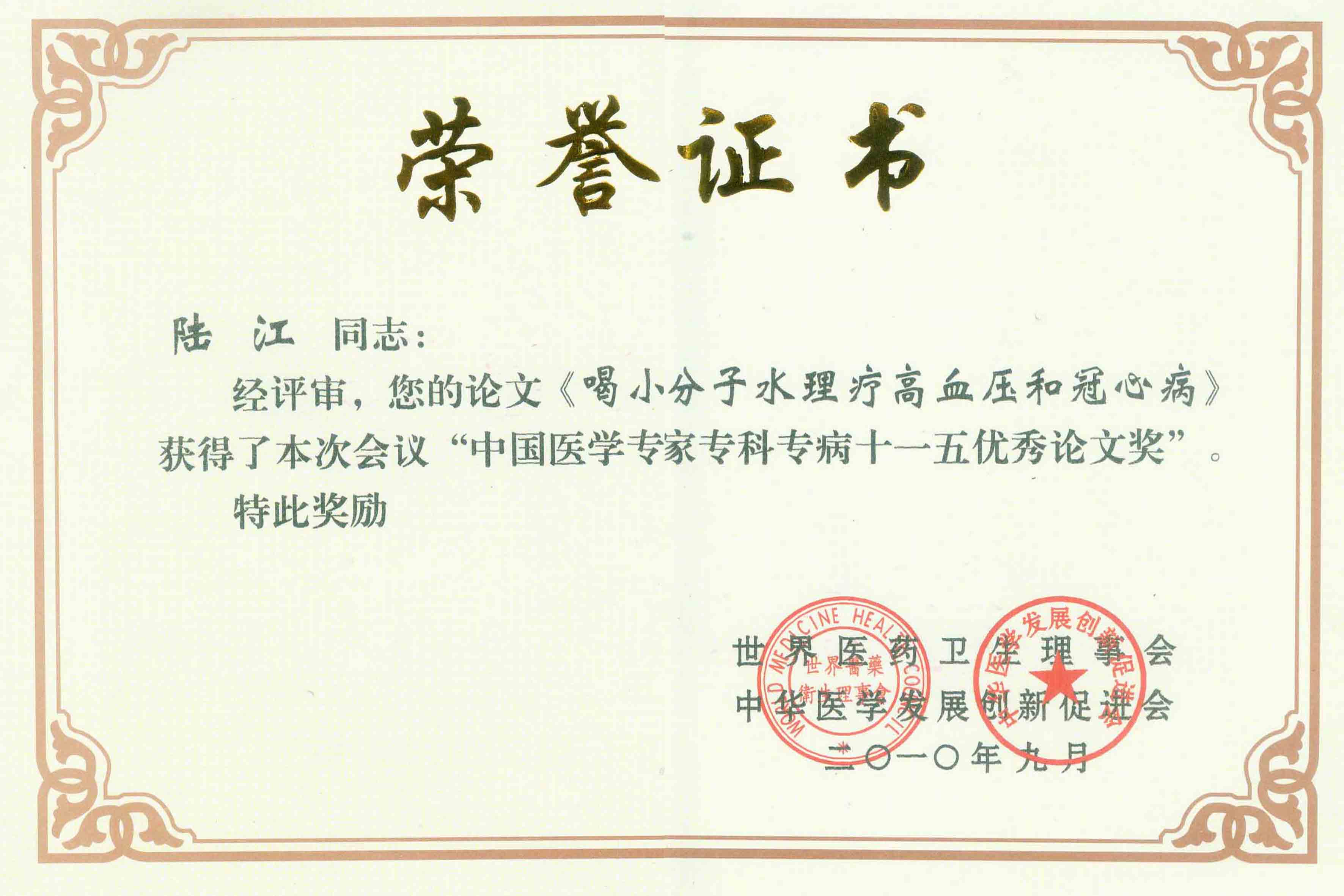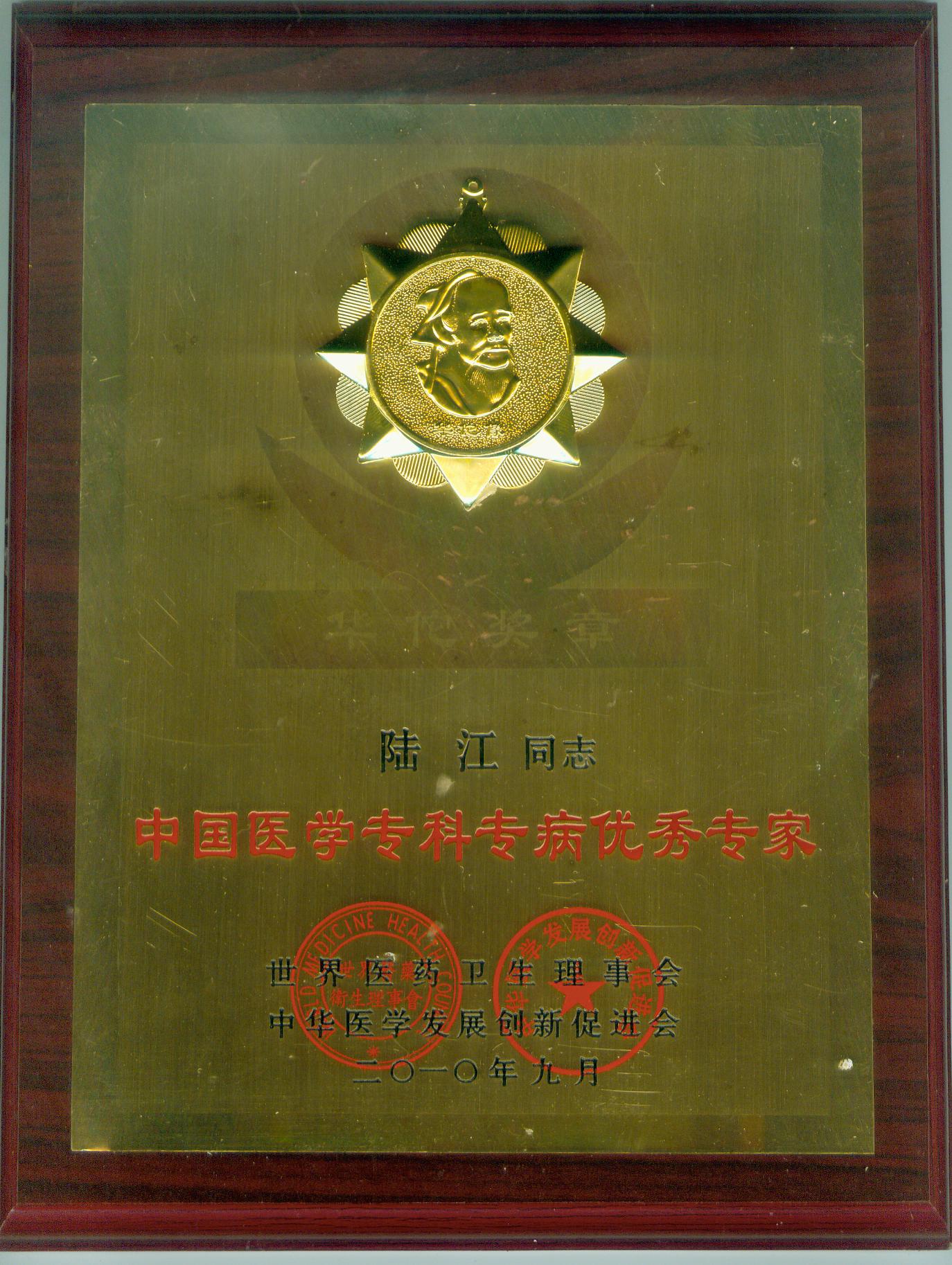 陸江獲得中國醫(yī)學(xué)專科專病優(yōu)秀專家恃別貢獻(xiàn)獎(jiǎng)
