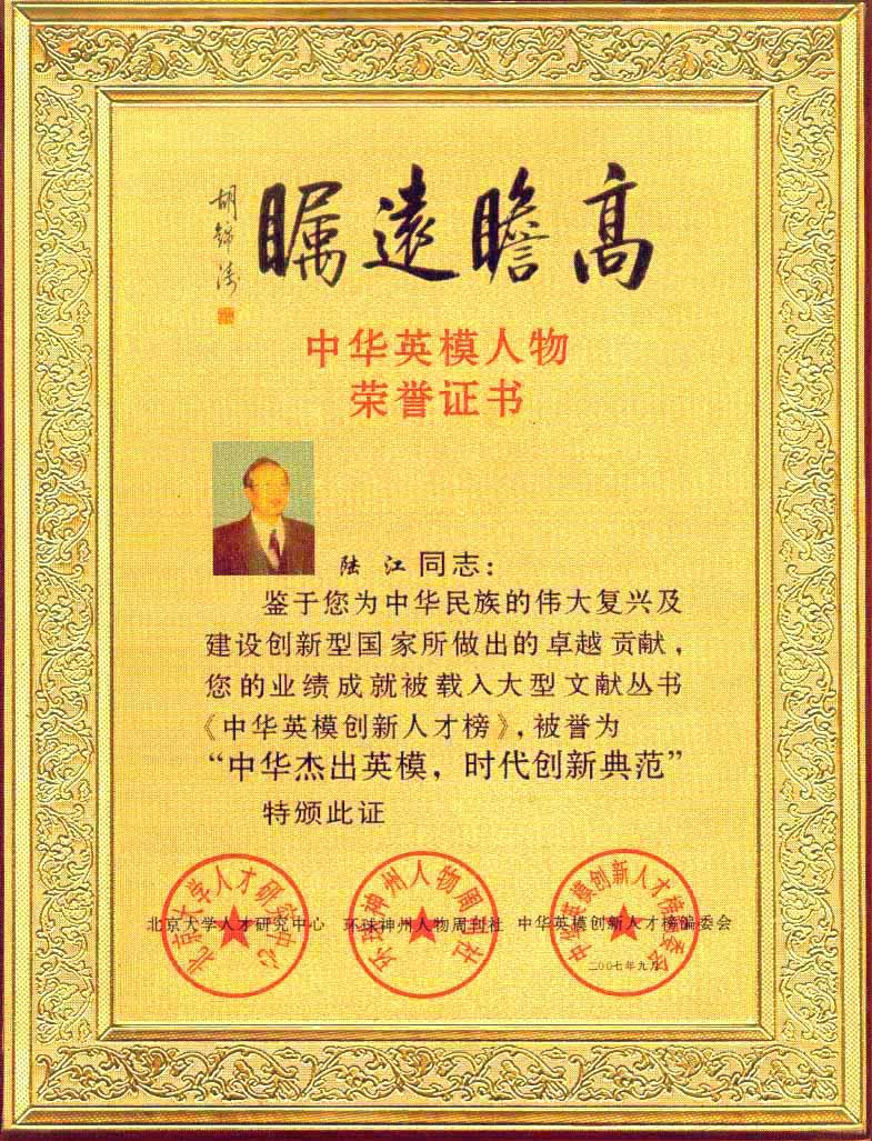 陸江榮獲引領(lǐng)行業(yè)發(fā)展杰出貢獻(xiàn)人物證書 --------卓康公司榮獲全國質(zhì)量、服務(wù)、信譽(yù)AAA級品牌證書